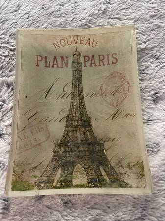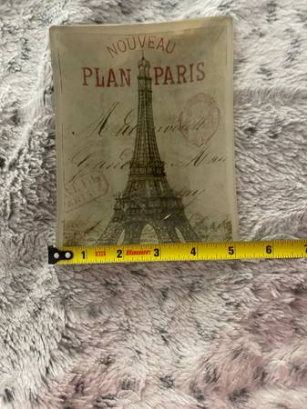 Stylish trinket plate ideal for decor alone or put your jewelry, change or your keys on it for your dresser or entry table. Features Eiffel Tower Collectible! Made of delicate glass See pics for...