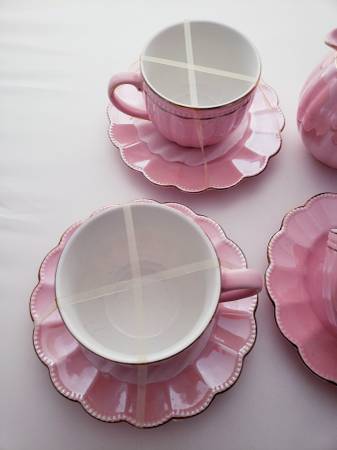 * Scalloped Saucer Design: The saucer boasts a scalloped edge
