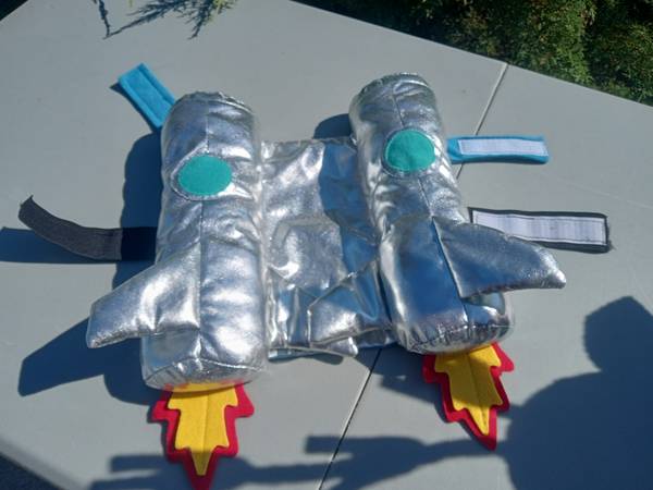 STRICTLY PICK UP ONLY IN DISCOVERY BAY, NO EXCEPTIONS. Small dog rocket costume. Model weighs 15 lbs.