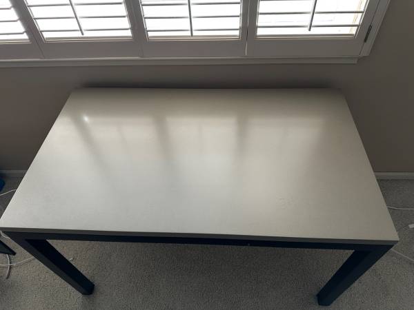 Crate & Barrel Parsons Desk or Small Dining Table with Dark Steel Base 48" x 28" (29 3/4" tall)