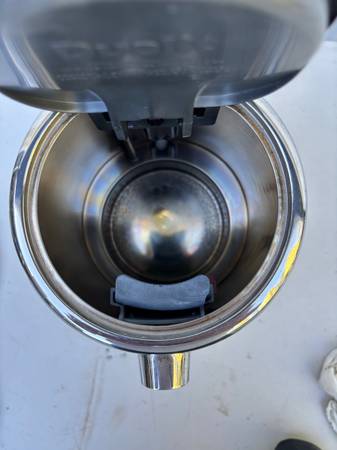 Dualit CJK1hot water boiling kettle pot with anti drip spout and whisper boil technology. Kettle is 10" tall and 5" wide - $50 - thanks for looking!