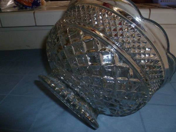 Cleaning out Grandpa's Estate Vintage Large Clear Pressed Glass Diamond Pattern Scalloped Edged Trifle/Fruit/Serving Bowl 6 inches high w/10 inch diameter 5 inches deep Asking $10