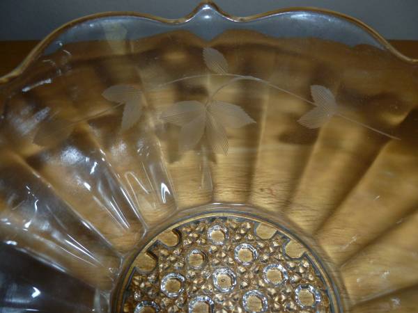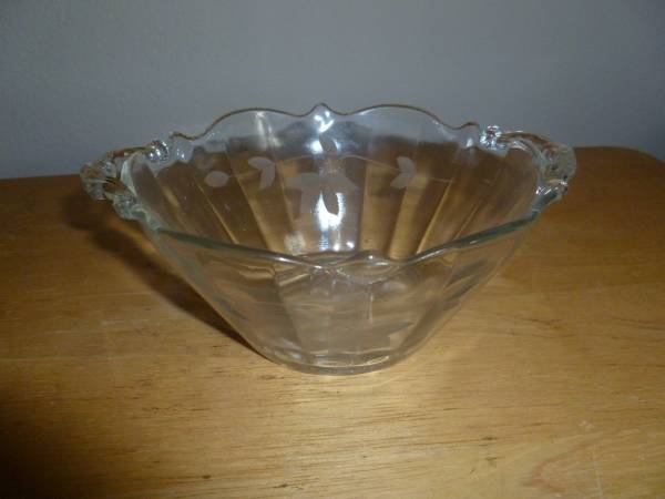 Clearing out Grandpa's Estate Clear Glass Fluted Candy/trinket/Display Dish Handles have a Fleur de lis in the center of each handle Under each side point is an etched leaf design Dish is 5 1/2...