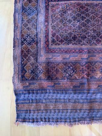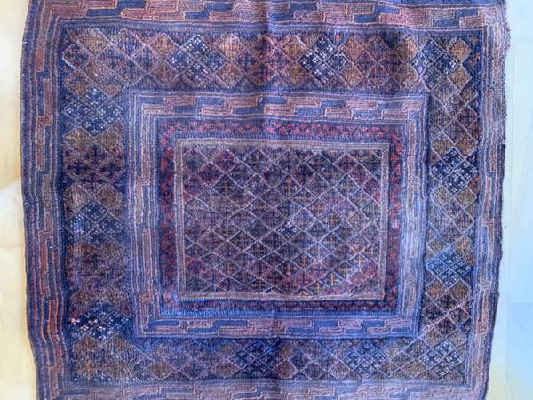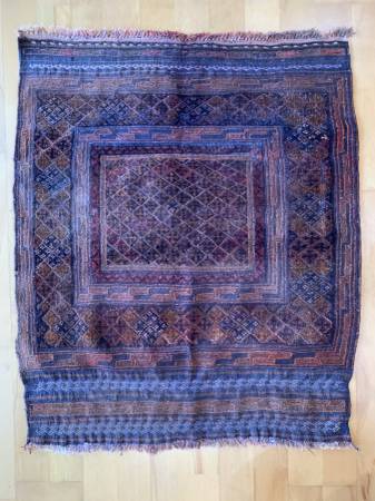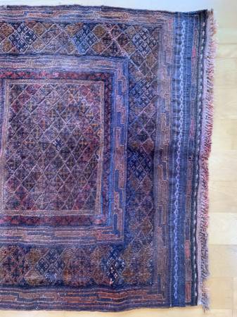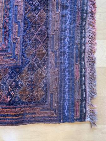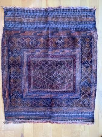 For sale is a nice hand knotted vintage wool rug or carpet from Afghanistan. It is made from 100% wool in the traditional style with several different colors. Needs to be cleaned a bit. Asking $80.00 or best offer. Cash and Carry from my location here in Lafayette.