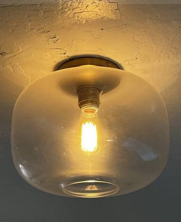 (3) FIXTURES AVAILABLE / $90 ea. DIMENSIONS Overall: 14"diam. x 11.5"h. Canopy: 6"diam. x 1.7"h. Shade: 14"diam. x 9.8"h. DETAILS Flush Mount / Metal canopy /Clear Glass shade /Hardwired / E26...