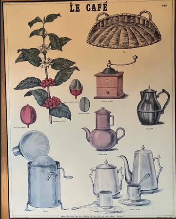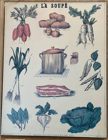 Seven Vintage French Food Posters. illustrating foods. Originally made for 19th-century French primary school classrooms. Identified as from the Musee Scholar. Reproductions from 1990s.