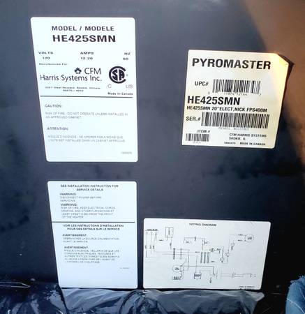 Pyromaster Electric fireplace/heater insert w/thermostat 20"...