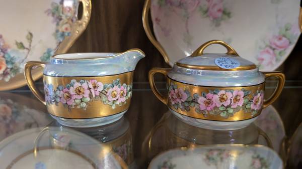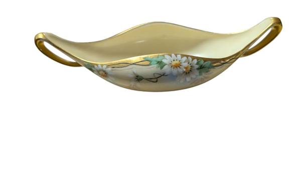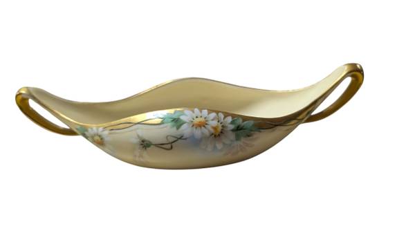 Rare Antique Limoges French Pin or Candy Dish Flowers w/ Gold Trim -...