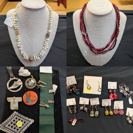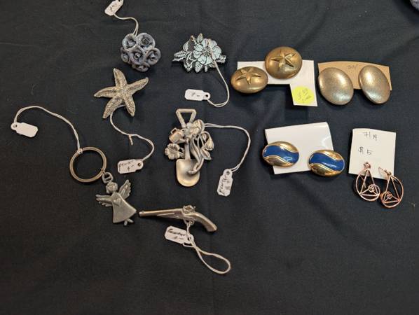 Clip on earrings Necklaces Cufflinks Bracelets Black Velvet jewelry box $35 Bolo Mickey mouse watches $5 to $75 Saturday 11 am to 4 pm Sunday 1 pm to 4 pm Some Friday afternoon's by appointment...