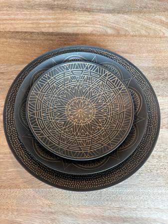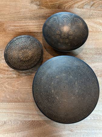 Set of 3 wall hanging discs Purchased from World Market Similar to what can be found on this link: https://www.worldmarket.com/p/iron-gold-etched-geo-disc-wall-decor-collection-SET126064.html...