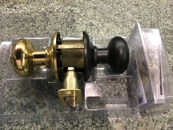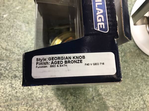 Genuine Schlage Georgian Knob lock set BRAND NEW I have two (2) complete lock sets, including hardware and striker plates **IMPORTANT NOTE** One side of each Lockset is Aged (Oiled) Bronze, other...