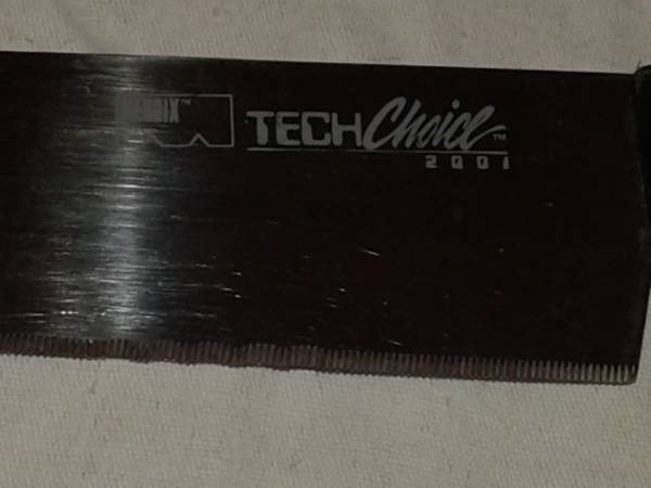 Used Tech Choice Knives Set = $10. Butcher Knife handle edge broken but still functional.