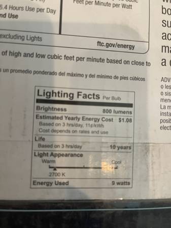 NEW! ***THIS BOX WE OPENED FOR INSPECTION. PRICE IS FOR EACH. SIZE: 44"(W) x 12.8"(H) (ASSEMBLED DIMENSIONS) - (2) 9W LED BULBS INCLUDED (60W EQUIVALENT) - QUIET MOTOR - REVERSIBLE BLADES - QUICKFIT...