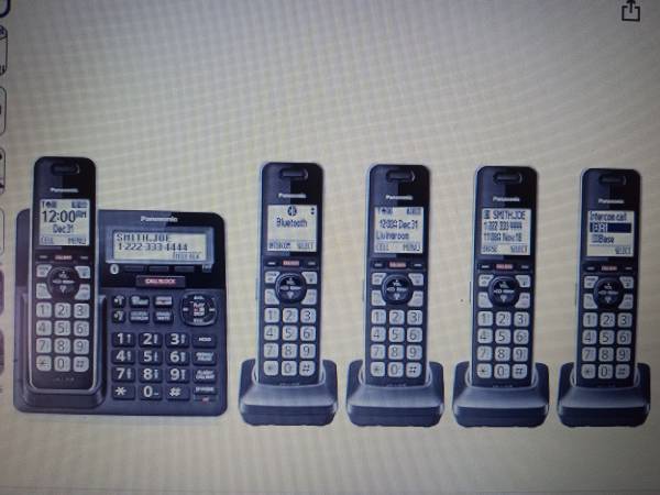 Selling my Almost New Panasonic Cordless Phone with Advanced Call Block, Link2Cell Bluetooth, One Ring Scam Alert, and 2-way Recording with Answering machine, FIVE HANDSETS, KX-TGF370 MODEL.