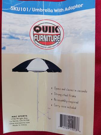 $40 including the following, as shown in the photos 3 folding chairs, 2 umbrellas - used but clean and great condition BBQ grill utensils and a bag of charcoal - new