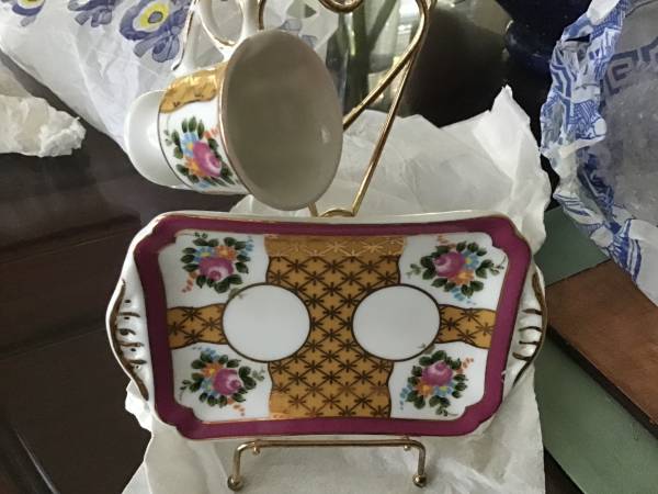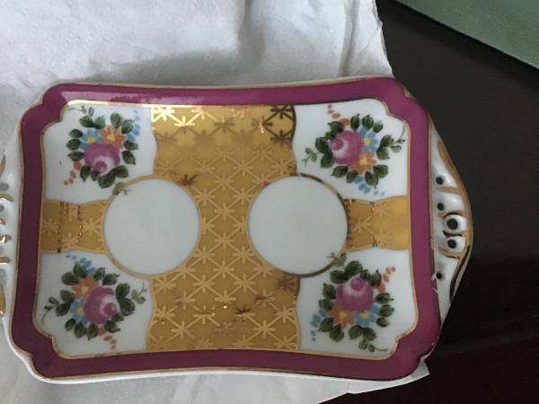 Handpainted miniature set. 22K gold Tray size is 5”x3” Imperial Limoges