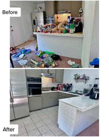 beds mattresses queen king mattress waste trash out cleaning service garbage appliance sofa couch Garage clean-outs cleanups yard waste pos construction waste shed clean outs house clean outs apartment clean outs backyard clean out basement clean out front yard cleanup storage unit clean out warehouse cleanup work-site Hot Tub / Spa , Office furniture , cubicles & Swimming pool removal & pavers , walkway , cleaners toilets sinks mopping floors tidy tidying big house small house apartment condo dirt dirty cleans commercial or residential homes clean, orderly, cleaning jobs equipment cleaning window cleaning standard cleaning mopping dusting vacuuming vacuums wiping down sweeping Laundry attendants maintenance in buildings offices Commercial cleaners residential properties commercial buildings retail centers office buildings sanitizing spaces , emptying trash cans throwing trash cleaning Housekeepers cleaning places residential houses hotels cleaning bathrooms Bedrooms break room Kitchen washing dishes changing bed linens glass surfaces Stairs Beds made Trash emptied Mirrors cleaned Baseboards dusted Furniture dusted Stove top wiped down Floors swept mopped Countertops backsplash Custodian Common Living Areas (including Hallways and Stairs ) Scrub bathtubs Airbnb housemaid household real estate vacation rental condo Bi-weekly Frequencies , Standard cleaning