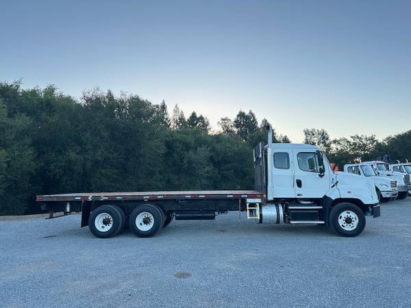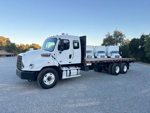 This 2017 Freightliner 114SD Flatbed Truck is ready to go back to work. This truck features low miles, a 20,000 lbs. front axle, and an extended cab with capability to seat five. Give our sales team a call for more information or come in for a test drive.