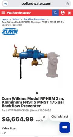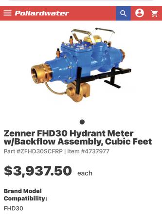 3" hydrant meter w back flow prevention Also have a 1 1/2" back flow prevention Backflow Preventer 1 1/2" 975XL2 zurn wilkins. $380 make me an offer I can’t refuse Cash n carry please