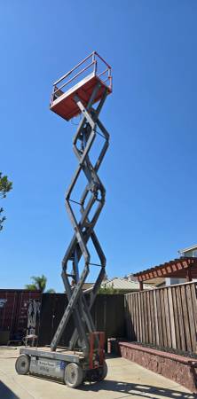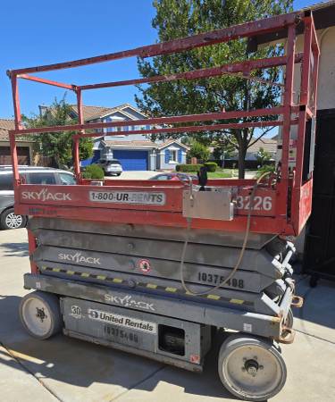 Located in Oakley 26ft Skyjack scissor lift 32in wide. Batteries, charger and solenoid were replaced 3 months ago. It's ugly, but a work horse. Can deliver for a fee. Located in Oakley