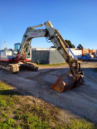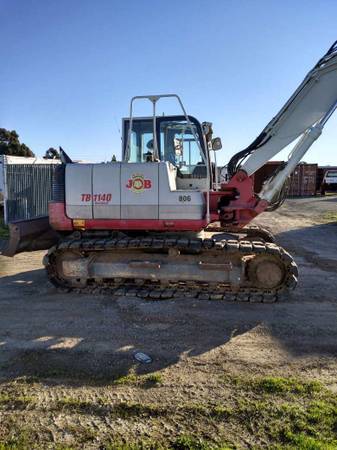 2016 Takeuchi TB 1140 Excavator for Sale. 4,800 hours. Articulating Boom. Cab operated quick disconnect. 34,000lbs. 18" bucket, 24" bucket, 36" bucket, smooth 48" grading bucket, and a 24" compaction wheel. All the pins are tight with no play. Well maintained. Runs great. Metal tracks with rubber pads bolted on. We are only selling due to purchasing all new Takeuchi excavators.