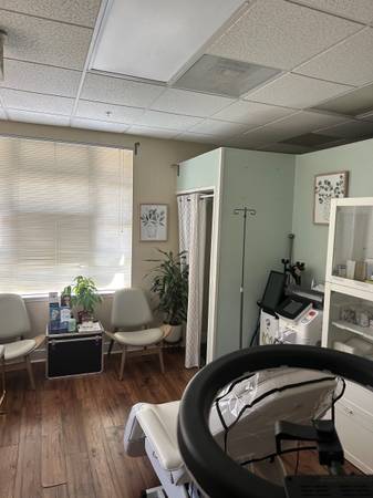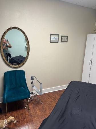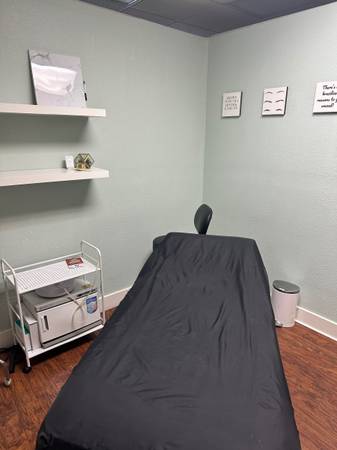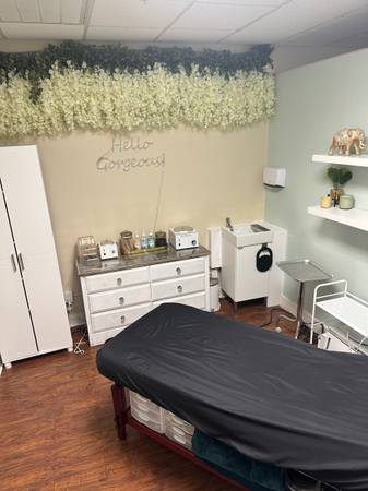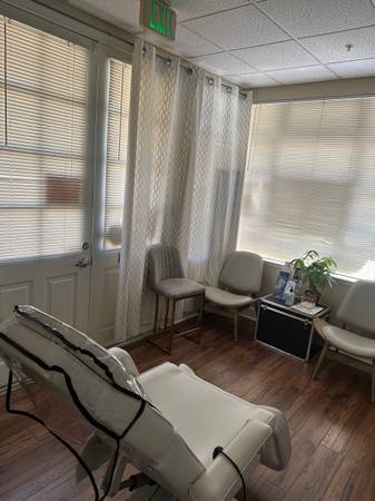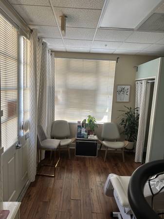 Two private personal treatment suites in salon available for month to month rental. One suite is 10’x10’ has its own sink, storage with treatment bed available,$600 per month. The other is 10x15’, has its own sink, windows and its own entrance,$750 per month