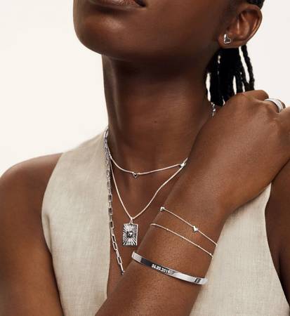 Beautiful Sterling Silver 5 hearts station stamped necklace. feminine on its own or for layering. Retails: $250...