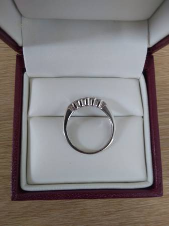 10K white gold ring with 5 round-cut diamonds 1/4CTW. Like New $650 14K yellow gold ring with 5 round-cut diamonds in high clarity 3/4CTW. New $950 Both rings are size 7