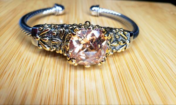 New Pink Yellow Quartz Gemstone and Steel Classic Cable Cuff Women Bracelet Bangle Jewelry Gift