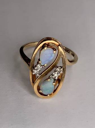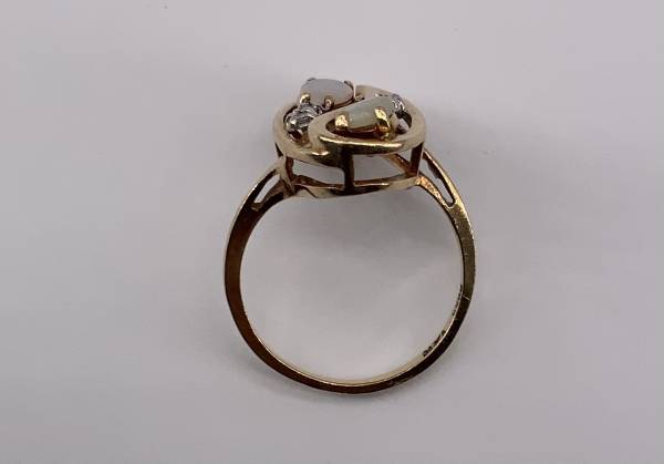ECG010322 LADY'S STONE & DIAMOND RING: 2.7G 14K-Y/G, 2-CABOCHON CUT OPAL 0.82CTW, 4-ROUND BRILLIANT CUT DIAMOND 0.08CTW SIZE:6.5 GRANTERS SHOWROOM 10056 SAN PABLO AVE LIC#0705-0998 EL CERRITO CA...