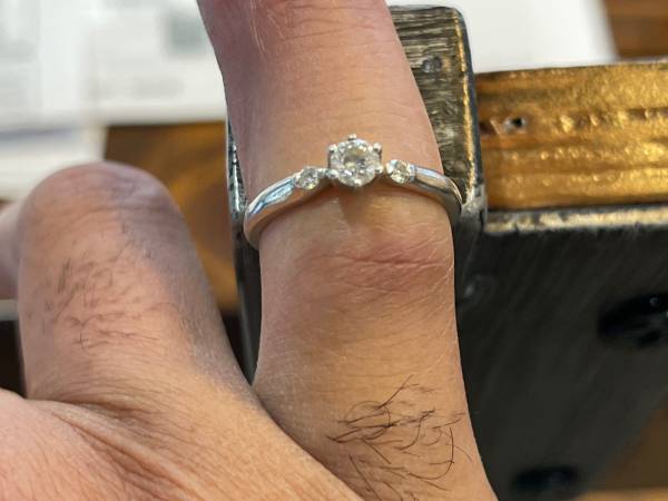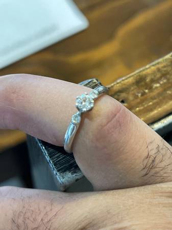 Platinum ring with/ 1 center diamond and 2 small diamonds