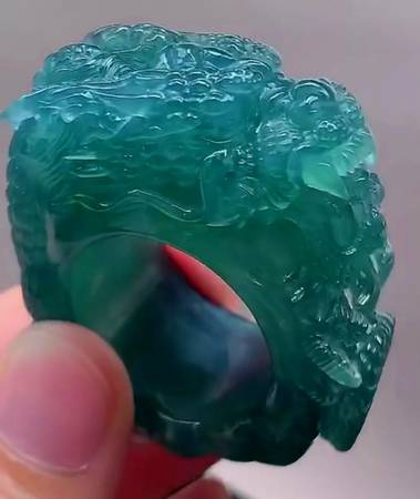 Authentic Burmese jadeite jade type A icy blue water Dragon men ring.