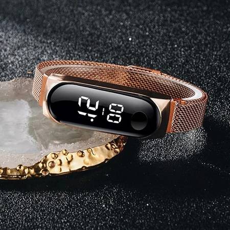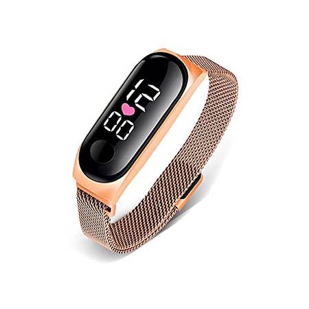 Exquisite Digital LED Magnetic Belt Band Watch Luxury and Elegance for Girls and Women (Copper Color) (Rose Gold Color )