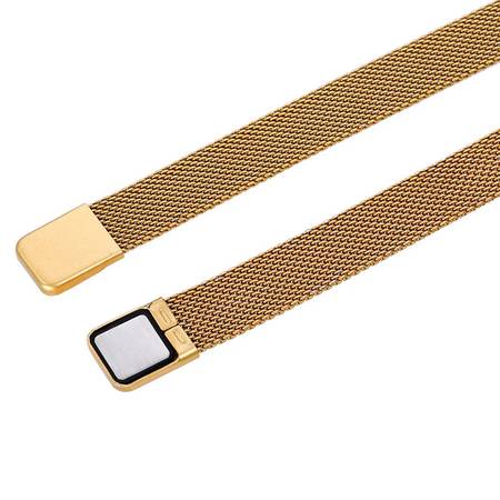 The strap is the Milanese strap, woven on specialized machines, the smooth stainless steel mesh wraps fluidly around your wrist. And because it's fully magnetic, the Milanese Loop is infinitely adjustable, ensuring a perfect fit.