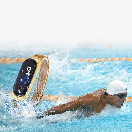 The water-resistant depth can be as deep as 10 meters, you can go swimming and take a shower with it on, it's suitable for indoor and outdoor sports like running, hiking, biking, fishing, hiking, and so on.