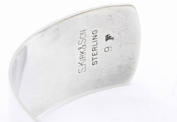 A beautifully Floral Designed Sterling Silver Cuff Link Bangle Bracelet by S. Kirk & Son With Vivid and Detailed Floral Patterns And Designs In Fine Condition