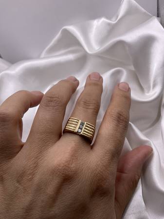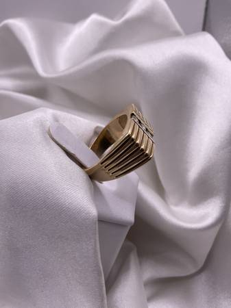 GRA043656 GENT'S DIAMOND FASHION RING: 9.3G 14K-Y/G, 3-ROUND BRILLIANT CUT DIAMOND 0.30CTW, 14 KARAT YELLOW GOLD DIAMOND ROW SQUARED DESIGN MENS RING 9.3 GRAMS GRANTERS PAWN SHOP VALLEJO 2581...