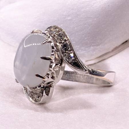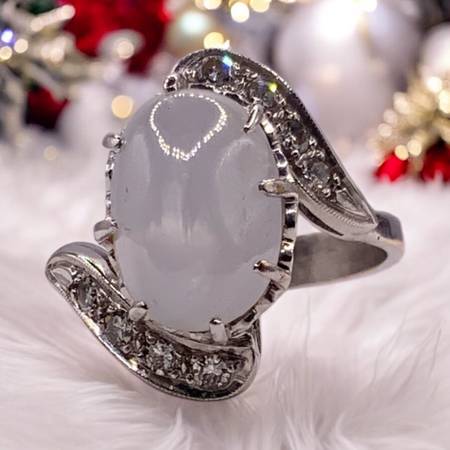 GRA039692 LADY'S STONE & DIAMOND RING: 5.42G 14K-W/G, 1-CABOCHON CUT MOONSTONE 2.48CTW, 8-ROUND BRILLIANT CUT DIAMOND 0.48CTW GRANTERS PAWN SHOP VALLEJO 2581 SPRINGS RD. LIC#000001258 VALLEJO CA...