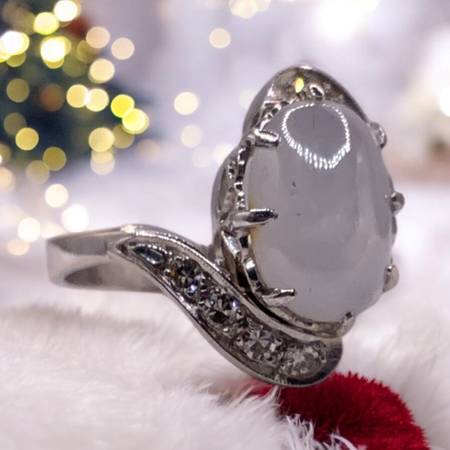 Moonstone Lady's 14K White Gold Stone & Diamond Ring 8 Diamonds -...