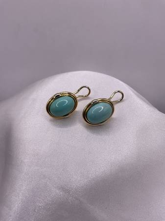Turquoise Gold-Stone Earrings 18K Yellow Gold 7.6g - jewelry - by...