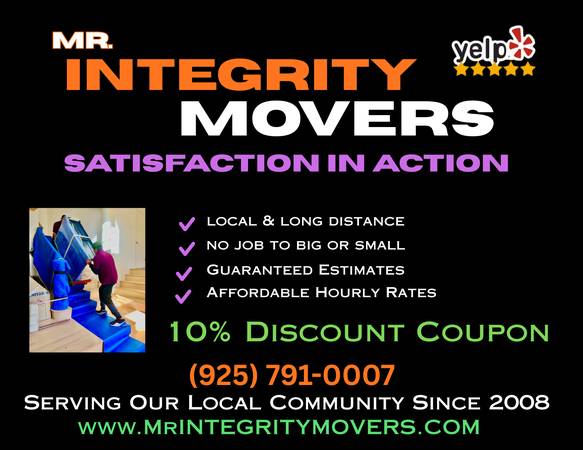 🟧🟪 Mr. INTEGRITY MOVERS 🟧 SERVING DIABLO VALLEY / 925 & SAN RAMON & BEYOND (Local & Long Distance)