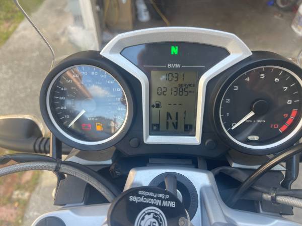 22k miles. Always garaged. Lightly ridden as a commuter. Overall excellent condition with a few very minor scuffs from being in the garage. ABS, ESA, heated grips. Standard seat height. No hard bags. "Naked" bike except a very small windscreen. Fuel gauge strip is not functioning as is true of many of the r1200 bikes. Replacement was covered by extended warranty but I stopped having it replaced after three times. Best to use old school odometer trip. Blue book is $8k. Since it is has been in the garage for a couple years with infrequent use, it should be taken in for service or you can do it yourself. You should do that anyway with any motorcycle you buy used. The rear tire does seem to lose air (although in good shape) between my infrequent rides so that should be checked out too, and it is due for service at 24k in about 2k so do it all at once and you can have confidence in a practically new bike.