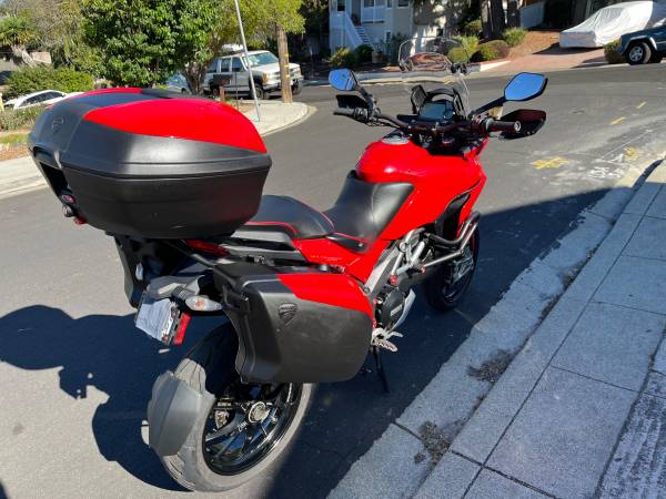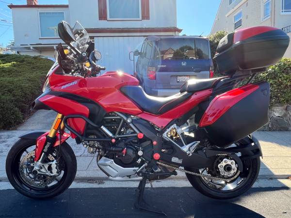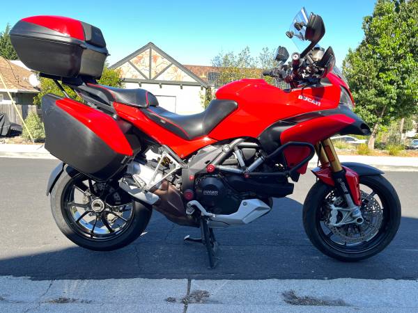 2011 Multi 1200S Touring. $2K desmo service (valve adjust, belts, & the rest) just done at Marin Speed. XTRAS: ft. ABS protector; Seal Savers; Cox radiator & oil cooler protectors; stock and touring screens w/Vario Lip; CNC Racing frame plugs, screen nuts, ft. & rear axle nuts; heavier Olins ft. fork springs; Pro Taper bar; K&N air filter; crash bars; Shorai Li-on battery; CNC Racing water pump protector; chain, rear sprocket, carrier nuts; Sargent heated seat; panniers & top box.