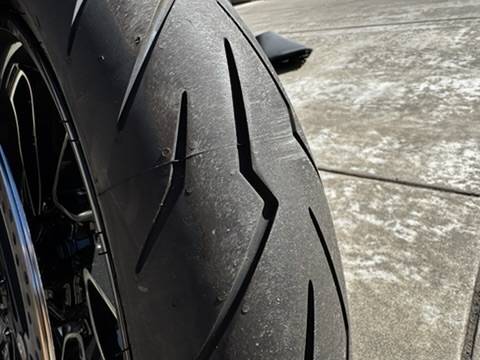 tire is 240/45 ZR17. The tires are Pirelli Diablo Rosso III.