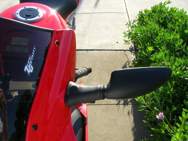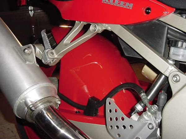 I have just put a brand new AGM (Absorbent Glass Mat) battery in her. Battery tender cables are installed. Tires topped off to proper psi. Chain lubed. Tank drained and refilled with Chervon 91 premium.