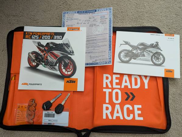 I am selling my 2015 KTM RC 390. The bike is in perfect mechanical condition and has no issues. I have a clean title in my name and the registration was just paid until October 2026. The bike has never been down and is completely stock (except for a lightweight lithium battery). I will include a GPR race exhaust if you would like it to be a bit louder.