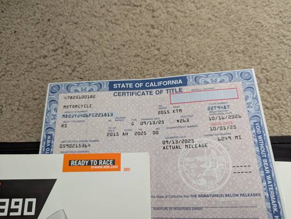 I have the original keys with key codes, the original KTM binder, and the original manuals.