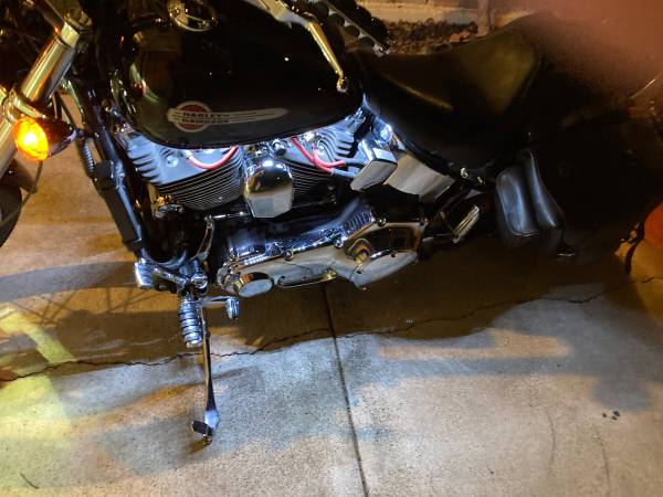 Screamin Eagle Motor, 95" Kit, Domed, Forged pistons, reworked SE heads with Black Diamond valves, compression releases, Mikuni HSR42, S&S Gear drive Andrews 44 cams, Daytona TwinTech adjustable/programmable ignition, New starter motor, New Stator, New Voltage regulator, New Clutch shell &Sprocket with Compu-fire 84 tooth ring gear &10 tooth pinion gear & jackshaft, Cycle Shack two-into-two slip on, in combo with cam and displacement give the bike a deep, rich rumble. Jagg oil cooler, Windvest windshield, Black leather saddlebags, 8" T-bars, tach, extensive chrome, stainless steel, and extras, two seats, two backrests (one tall, one mini, with pads), "T-Bag" combo travel bag, Wide rear tire kit, New Metzeler tires 16 rear, 21 front give a low profile look, New black paint gas tank the bike look and runs like new, Engine/tranny painted with black paint, silver cooling-fin edges, Harley security system with siren and two fobs, New Progressive suspension front and rear, New Kuryakyn chrome premium ISO handlebar grips, New chrome front master brake cylinder, and chrome brake & Clutch hand levers, New chrome mirrors, 67,939 miles Uses no oil, no oil leaks, reliable, Built to be strong, fast and reliable, Very clean, Excellent condition, Bike as had an oil change every 5,000 miles with Harley-Davidson 20/50 synthetic oil, New LED Headlight, comes with a lot of extra parts, come with Service manual, Parts Catalog, Call for details, Due to scam artists, only face-to-face transactions are considered, this bike has been well-loved, Reasonable offer only...
