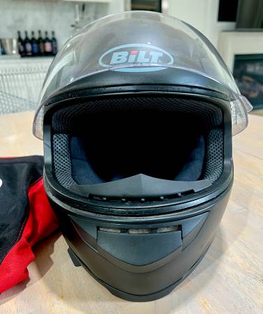 For Sale is a BILT Full Face Black Matte DOT Motorcycle Helmet Size Small with Carry Case in Excellent Condition.