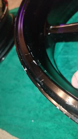 Good runnable condition, no problems there.. but there are several cosmetic dings and imperfections, rock chip kinda things. NO bends or pavement scuffs or anything nasty like that.